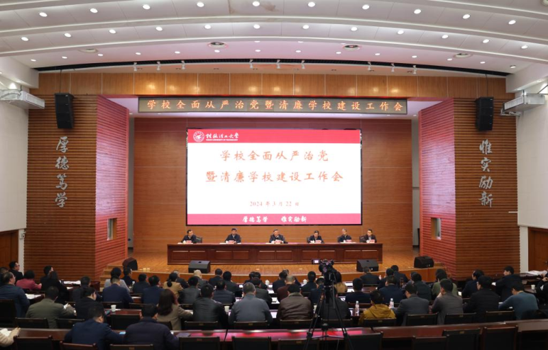 为深入学习贯彻习近平总书记在二十届中央纪委三次全会上的重要讲话精神,深刻学习领会习近平总书记关于党的自我革命的重要思想,总结2023年学校推进全面从严治党工作情况,部署学校2024年全面从严治党、清廉学校建设和纪检监察巡察工作任务,进一步统一思想、凝聚力量,3月22日下午,学校2024年全面从严治党暨清廉学校建设工作会议在屏风校区图书馆报告厅召开。校领导邓军、吴志强、韦学敏、黎贞崇、罗盛锋、曾繁荣出席会议。学校党委常委唐壮东、叶昊、邱杰,校长助理张成龙,党委委员、纪委委员,各单位、各部门党政主要负责人,各二级学院党委副书记、纪委书记,党群部门副职领导参加会议。英国上市公司365设视频分会场。会议由学校党委副书记吴志强主持。