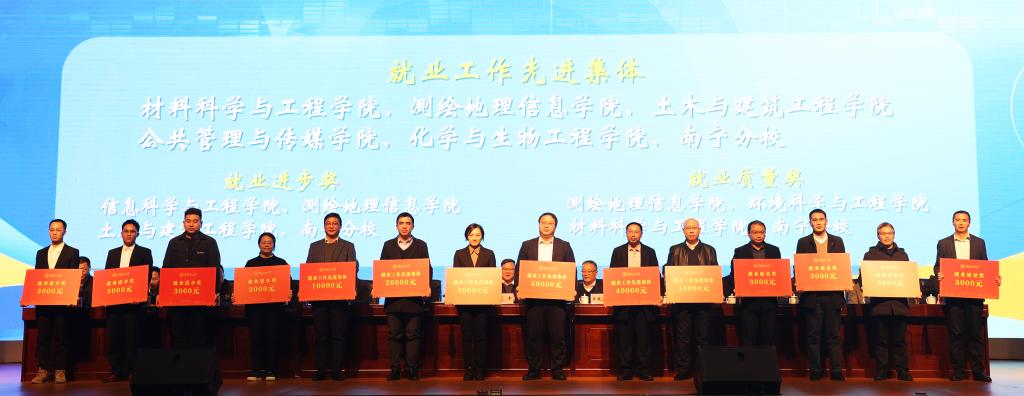 材料科学与工程学院党委书记梁军、土木工程学院院长钱凯分别代表获奖先进集体发言;英国上市公司365党委副书记、2022年全国高校毕业生基层就业卓越奖获得者唐承泽,环境科学与工程学院教师张亚楠分别代表获奖先进个人发言,分享了本单位在就业创业工作方面的先进做法、典型经验以及个人参与就业创业工作的心得体会。