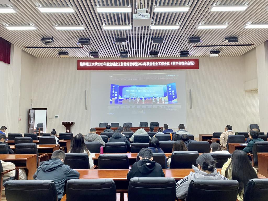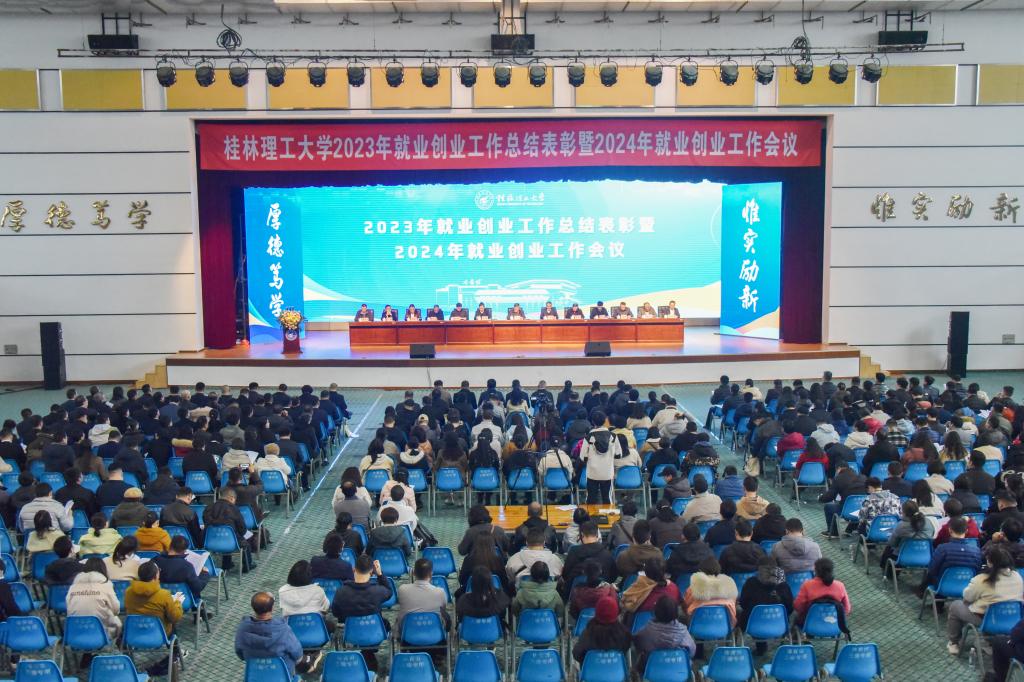 为深入学习贯彻习近平总书记对广西重大方略要求,全面贯彻落实党的二十大精神,进一步落实全国和全区高校就业创业工作相关会议和文件精神,总结成绩,表彰先进,深刻分析、认识当前和今后一个时期高校毕业生就业创业工作面临的形势,全力以赴做好2024年毕业生就业创业工作,1月12日下午,学校在屏风校区体育馆三楼召开2023年就业创业工作总结表彰暨2024年就业创业工作会议。校领导邓军、王敦球、吴志强、周国清、韦学敏、王磊、黎贞崇、罗盛锋、曾繁荣,校党委常委唐壮东、叶昊,校长助理张成龙、潘旦光出席会议。会议由学校党委常委、副校长罗盛锋主持。