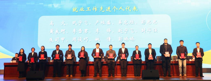 会议表彰了学校2023年毕业生就业工作先进集体、创新创业工作先进集体、征兵工作先进集体以及就业工作先进个人、创新创业工作先进个人。学校副校长周国清宣读了表彰决定,主席台就座领导为获奖先进集体和先进个人代表颁奖。