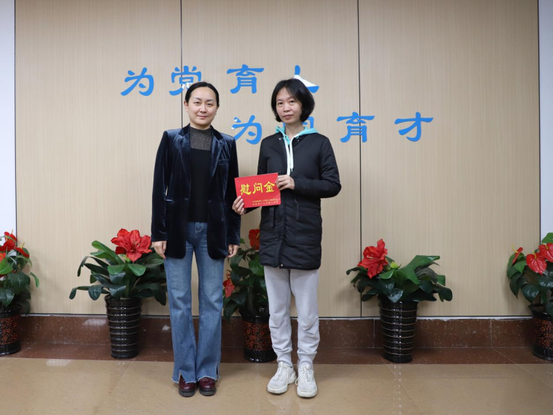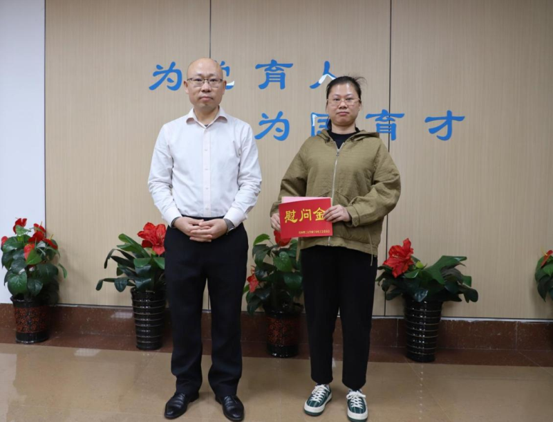 英国上市公司365党委副书记苏欣(左一)慰问在职困难教职工代表