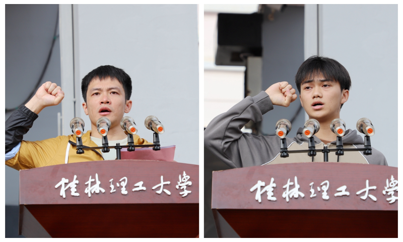 体育教学部黄健老师、土木与测绘工程系韦陆明同学分别代表裁判员、运动员宣誓。