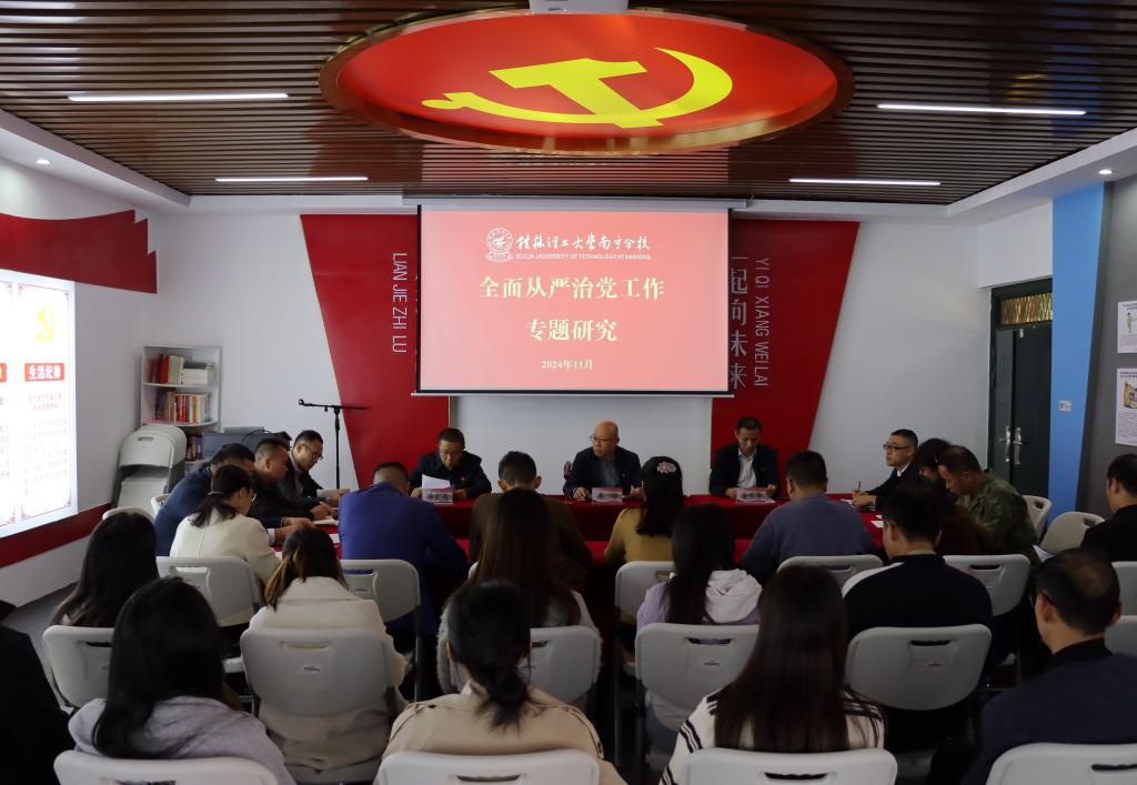 李雨就进一步深化南宁分校全面从严治党工作提出三点要求:一是要强化理论学习,深刻领会和牢牢把握习近平总书记重要讲话精神实质和丰富内涵,切实增强纪律意识、规矩意识;二是要以实际行动推进全面从严治党,为南宁分校教育教学事业高水平高质量发展提供坚强保障,切实增强党建推动业务发展的实效性;三是要持续健全完善监督体系,切实扎牢制度的笼子,履行好监督的职责,进一步推动清廉学校建设。