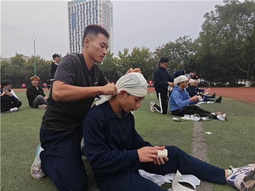 本次军事技能竞赛设置手榴弹投掷、30米×2蛇形跑、战伤救护、模拟射击、2分钟俯卧撑等常见军事训练科目,选手以系部为单位形式报名参赛,每个系1-2个队,每队由6名本系学生组成。