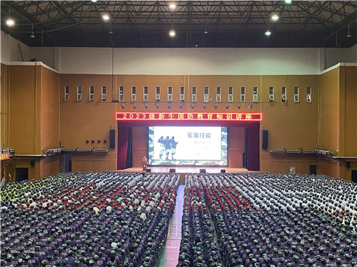 | | 为进一步弘扬爱国主义精神,普及国防教育知识,增强大学生国防意识,9月17日晚,2023级学生军训团副团长在空港校区体育馆为4500余名新生做国防教育知识讲座。
