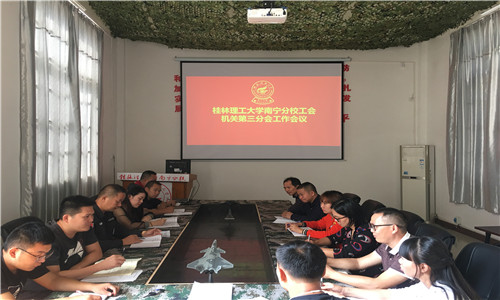 2019年11月5日,机关三分工会在国防教育教研室会议室召开工会工作例会,会议由机关三工会文体委员杜建主持。会议上,杜建同志首先介绍机关三分工会的近况,同时安排部署会员参加第28届田径运动会教工田径与民族传统趣味体育项目竞赛。 第七党总支书记陈发杰代表本分会主席在会上,要求各分工会委员“不忘初心、牢记使命”,团结协作做好本分会在运动会的服务工作。并激励参加运动会的会员,希望他们在接下来的比赛中赛出成绩,赛出水平,赛出风格。增强教职工的凝聚力和竞争意识,并宣传机关三分会昂扬上进、奋勇拼搏的体育精神。