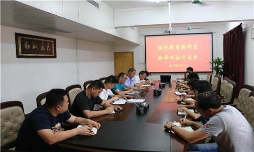 会上,首先由参加了全区国防教育与学生军训工作专题研修班的教师代表给参会人员做了研修学习总结,从如何上好一堂军事理论课以及如何做好大学生军训工作等方面进行了分析。之后,国防教育教研室负责人对教师代表的总结进行了讲评并就教学、科研等具体问题与教研室成员进行了研讨和交流。
