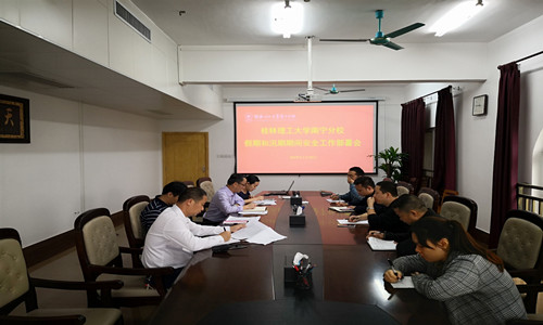 为认真贯彻广西壮族自治区教育厅下发的关于做好清明节、“广西三月三”和汛期期间学校安全工作的通知精神,防范和减少各类意外、灾害事件发生,3月29日上午,分校在空港校区行政楼417会议室召开了假期和汛期期间安全工作部署会。分校党委副书记梁冬松、唐承泽,分校副校长苏欣出席会议。分校宣传部、学生工作部、保卫工作部、现代教育技术中心、后勤管理部等职能部门负责人参加了会议。