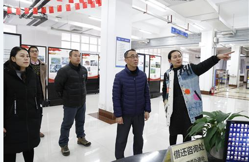 分校党委副书记梁冬松(右二)、副校长苏欣(右一)在图书馆开展安全检查