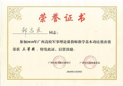 分校教师邹志友荣获全区高校军事理论课教学竞赛三等奖