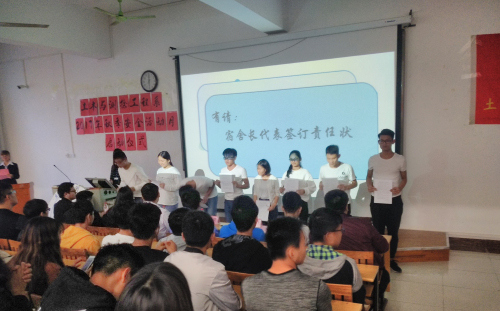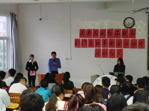 | | 为进一步增强师生安全法制、学生自我防范意识,11月6日下午,我系在启智楼201教室成功开展了安全活动月启动仪式。系党总支书记黄文学老师、保卫科工作部副主任杜建老师、系党总支副书记邹凤婵、部分辅导员出席该仪式,我系16、17级各班安全信息员、宿舍长参与了仪式。大会首先播放了我系历届安全活动月的相关视频。接着,保卫科工作部副主任杜建发表讲话,他强调,同学们应以此次活动为契机,努力提高自我防范意识和能力,从根源上杜绝安全事故的发生。随后,宿舍长代表参与了签订责任状仪式,并由安全信息员代表宣誓。最后,我系党总支书记黄文学为启动仪式致辞,他通过身边的各种安全隐患案例生动形象地说明了安全的重要性,并表示相信通过顺利开展此次安全活动月能进一步使得安全理念深入人心。
