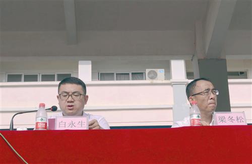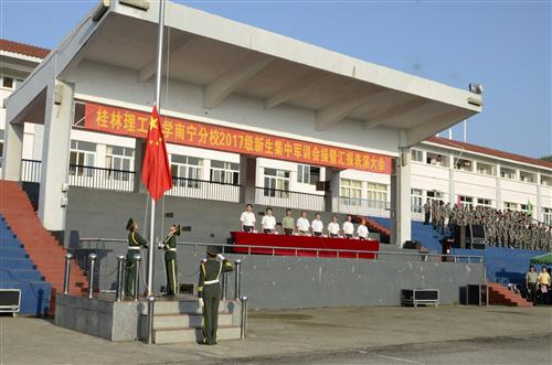 | | 9月23日上午,分校2017级新生集中军训会操暨汇报表演大会在空港校区运动场举行。学校王敦球副校长,分校在家领导白永生、梁冬松、张雷、劳景寮、梁锦叶、唐承泽,南宁市德育泉国防教育基地政委汪德华出席大会。分校相关职能部门、各系部负责人、教职工代表及全体2017级新生参加了大会。烈日煅英姿,使命锤意志,磨炼终成器。上午8点,伴随着庄严雄壮的国歌,军训汇演拉开了序幕。迎军旗后,在南宁市德育泉国防教育基地政委汪德华陪同下,王敦球副校长检阅了军训队伍,参训学员口号嘹亮、士气高扬、精神抖擞地列队受阅。