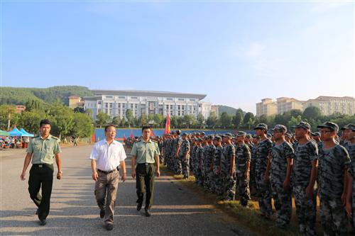 汇报表演结束后,王敦球副校长作了讲话,他代表学校向为军训工作付出辛勤汗水的教官和工作人员致以崇高的敬意和衷心的感谢!对参训的全体新同学表示亲切的慰问,对同学们在此次军训中取得的良好成绩表示热烈的祝贺!他希望,同学们要牢记这次军训生活,坚持把军队的优良品质和作风融入到今后的学习、生活和工作中,做到与时俱进,弘扬“艰苦创业、敬业奉献、团结协作、开拓创新”的桂工精神。做一个理想远大、热爱祖国的人,追求真理、勇于创新的人,德才兼备、全面发展的人,为推进学校的全面建设和发展,为祖国明天更辉煌而奋发图强。