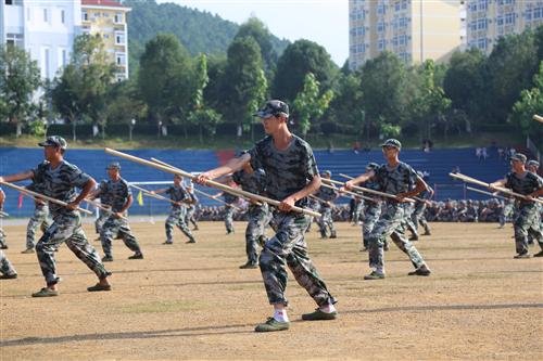 伴随着分列式进行曲,2017级新生军训学员方队依次从主席台前走过,他们神采奕奕,斗志昂扬,展现了桂工学子卓越的精神风貌。随后,还进行了军体拳、捕俘刀、应急棍等精彩表演,同学们以严明的纪律、昂扬的斗志、整齐划一的动作,汇报了他们优秀的训练成果,展现了他们的青春风采和无限活力,表达了勤奋学习、努力拼搏、成长为祖国栋梁的共同梦想。