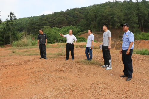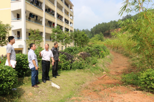 分校梁锦叶副校长(左二)对校园周边山体进行检查