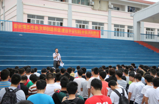 4月11日上午,我系田径场举行安全教育大会暨“2017年春季校园安全活动月”启动仪式,会议由我系党总支副书记甘锦琛老师主持,全体在校学生参加。
