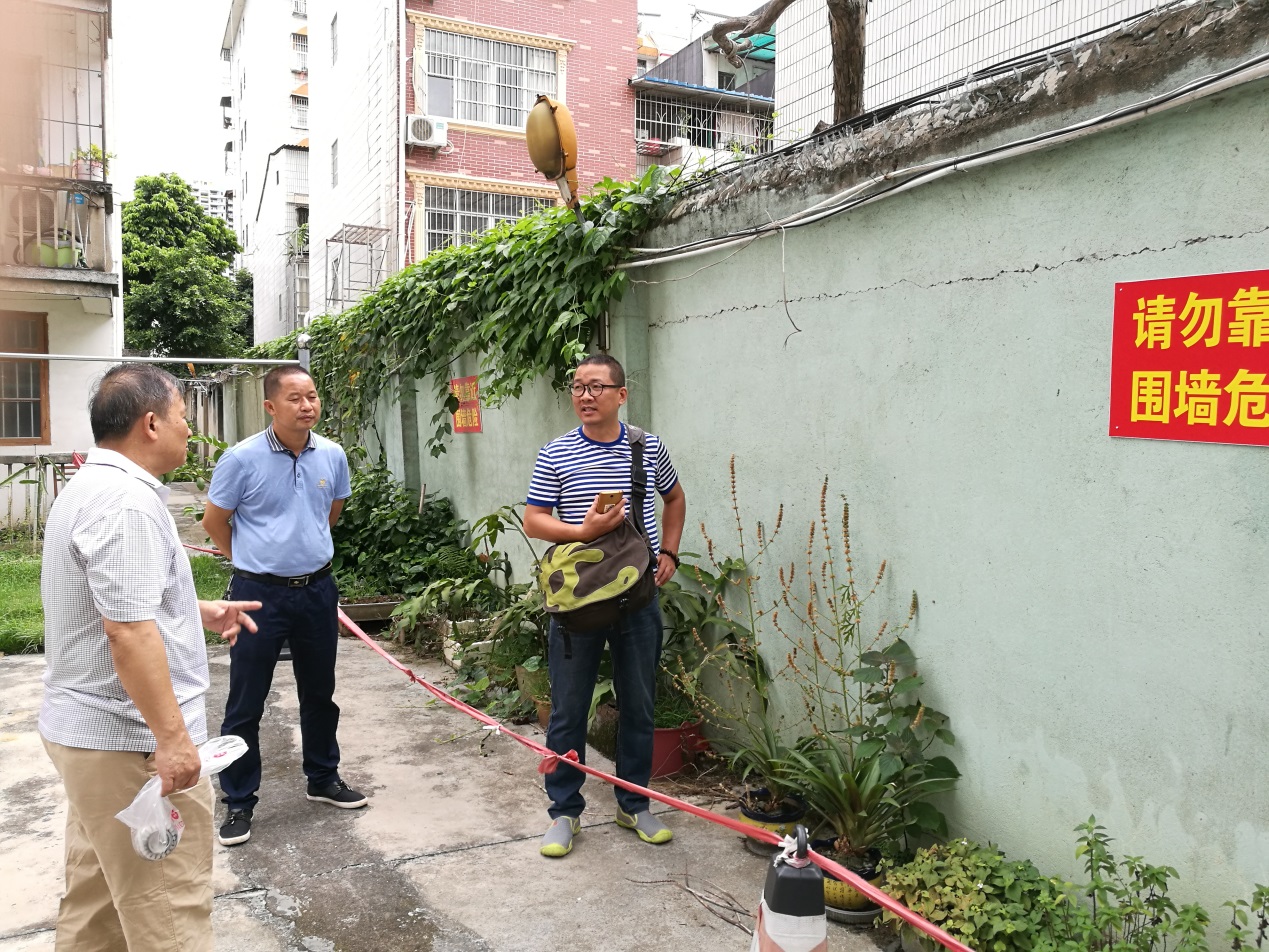 6月30日上午,陈发杰主任带领保卫工作部一行3人和施工单位代表在安吉校区就围墙安全问题进行现场办公。