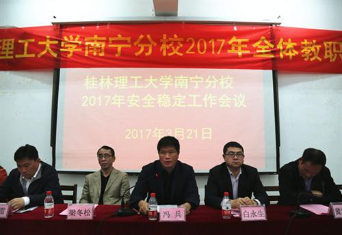 分校冯兵校长在会上作总结讲话。他就抓好落实分校2017年安全稳定工作提出以下要求:一是切实增强工作的责任感和使命感,绝不能心存侥幸,漠视安全;二是切实狠抓关键、从严管理,绝不能留有隐患、出现事故;三是切实协调联动、齐抓共管,绝不能推诿扯皮、推卸责任。分校冯兵校长强调,分校安全稳定工作面宽量大、是一项长期而艰巨的工作,要彻底消除隐患,杜绝重大安全事故,必须要抓住关键、从严管理,狠抓各项措施的落实到位。各单位、部门一定要树立“抓发展首先抓稳定、抓好稳定促发展”的理念,从提高党的执行能力和执政水平,构建社会主义和谐社会的高度,充分认识维护分校安全稳定的极端重要性,以高度负责的态度,加大力度,强化措施,严防死守,真抓实干,坚决筑牢分校安全防线,为维护社会稳定,建设和谐平安校园作出应有的贡献!