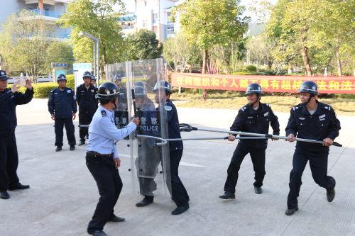 在训练现场,保卫工作部陈发杰主任对分校本轮训练活动给予了充分肯定,他指出在当前暴恐形势下,加强高校反恐防暴技能训练和应急演练非常必要,全力做好反恐防暴队伍建设,努力打造一支关键时刻拉得出、危急时刻冲得上、领导师生信得过、校园安全靠得住的钢铁队伍,为保护师生人身和财产安全,维护学校安全稳定做出更大的贡献。希望学校进一步提高反恐装备建设和应急处突能力,维护学校的安全稳定。