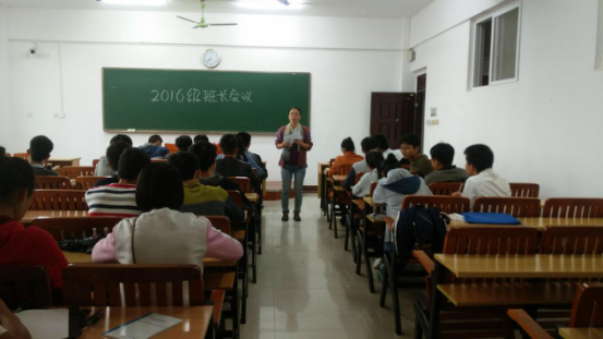 | | 了提高同学们安全意识,以及把安全活动月内容更好的传达到班级。11月11日下午17:40,我系于藏修楼3203教室召开了“2016级班长会议”。此次会议由李肖然老师主持,参与会议的有机械系16级各班班长和副班长。