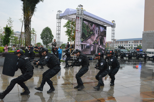 会上,除了展示精良的武器装备及设施外,与会人员还观看了我校安全保卫工作宣传片及宣传展板。