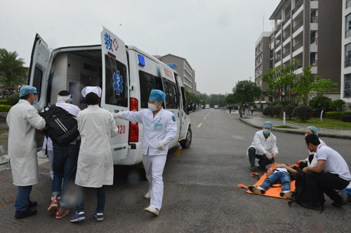 4月27日上午,由自治区高校工委、教育厅主办,我校承办,桂林市反恐办、桂林市公安局、桂林市消防支队、武警桂林市支队、桂林市卫计委协办的2016年广西高校安全综合应急处置演练观摩会在我校雁山校区举行。分校保卫工作部陈发杰主任带队观摩学习。