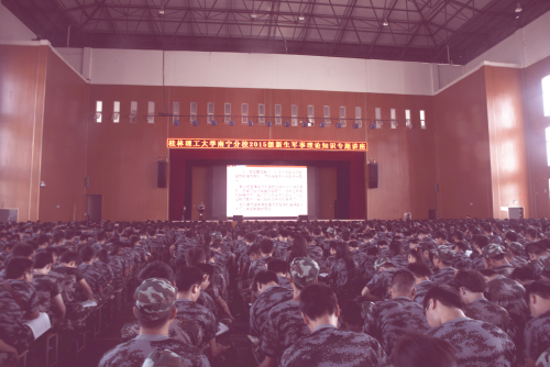 张部长向新生介绍了国防理论概述、我国武装力量和信息化战争等三个方面,深入浅出的对各专业领域进行了精彩解读。张部长还提醒同学门在军训过程中需要注意的各类事项,希望同学们克服困难安全顺利的完成军训任务。