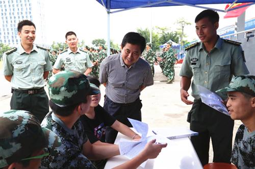 | | 9月22日下午,桂林理工大学校长助理、学校校长王文,学校党委书记罗雪平,副校长梁锦叶来到新生训练场地,亲切慰问军训团教官、指导员和正在军训中的2015级新同学。校领导一行走访了军训团第一至第六营,亲切慰问了军训团的教官和指导员,对他们的辛勤付出表示感谢,对他们的辛勤工作给予肯定。在军训团第二营,校领导一行认真听取了军训团团长史建忠少校的工作汇报,详细询问了训练的进展情况,并查看了医疗救助等军训后勤保障工作。
