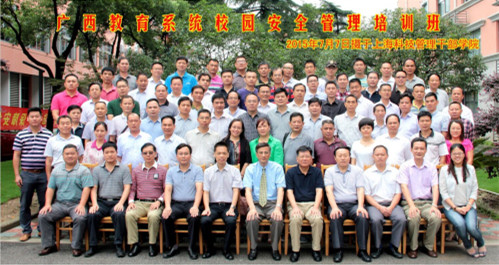 此次培训主要学习关于学校安全稳定工作的形势及对策,提高领导干部突发事件应急管理能力,处置突发事件过程中应对社会媒体的方法和技巧,校园安全稳定的新形势、新特点和新对策及校园周边环境治理新动态等。此次培训于2015年7月6日至10日为期5天。共有73名来至广西高校安全保卫负责人参加。