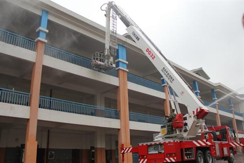 在活动开始前,扶绥县消防大队教官为在场师生现场讲解了如何准确使用灭火器和发生火灾时疏散过程中需要注意的事项。随后,参加活动师生代表在保卫部工作人员的指引下,进行了紧张而有序的消防应急疏散演练。当安保队员拿着灭火器冲进“火场”时,当消防云车巨大的臂膀伸向被困在教学楼高层的师生时,当看到消防官兵在营救被困人员过程中表现出的英勇无畏和精湛技能时,在场观众无不由衷赞叹。