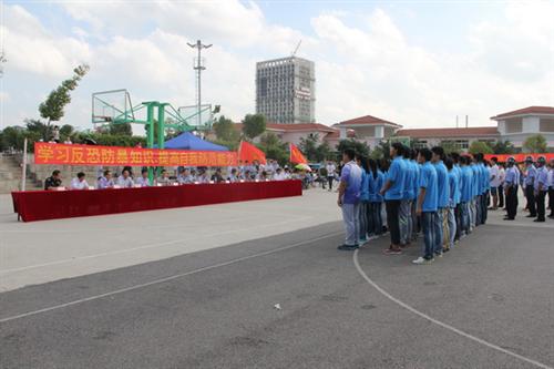 在活动现场,阮庆东站长为现场师生讲解了如何识别恐怖暴力分子,如何在混乱的环境中安全撤离,如何发现并处理可疑包裹、行李物品等方面的知识,讲授并现场示范了遭遇暴徒时的自救方法。在演练命令下达后,参演师生及警员共同投入到打击暴力恐怖事件的演练活动中。整个活动持续二十多分钟,在我校保卫部工作人员、扶绥县公安局和参演师生代表的密切配合下,“暴徒”被顺利制服。