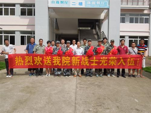 今年在我校报名参军的在校大学生共有七名,其中庞家云、蒋威、黄清宇(女)三名同学光荣加入中国人民解放军驻香港部队,另外四名同学分别被解放军沈阳空军和解放军123师选中。加上在原籍参军入伍的我院学生9人,今年我院共计有16名同学到部队服役。