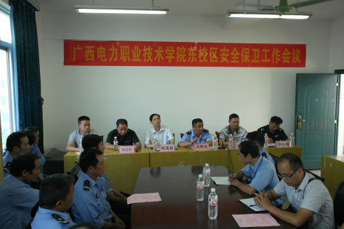| | 10月17日上午,我院兄弟院校广西电力职业技术学院在安吉校区举行安全保卫工作会议,会议由广西电力职业技术学院保卫处处长冯明光主持,我院保卫工作部陈发杰主任出席会议。