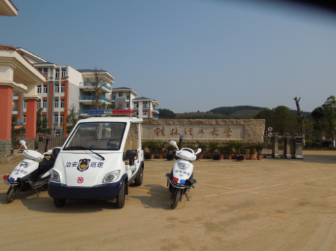 我校领导高度重视校园安全文明创建,为了更加有效的维护校园安全,提高保卫工作部快速处置突发事件的能力,结合校园的实际情况。学校购买的电动巡逻车,正式开始投入使用。