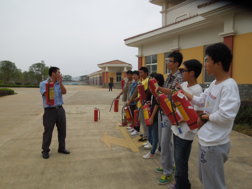2013年10月29日下午16:00-17:00我校消防志愿者在一栋教学楼前进行消防知识培训,在此次演习中,保安队员和消防协会志愿者们积极参与并配合星河物业公司主管钟甫善的工作,共同学习消防安全知识,接受消防器材使用的培训。经过老师通俗易懂的讲解,志愿者们很快掌握了基本的消防知识,同时也提高了同学们的安全意识。老师现场对不同的消防器材进行详解,如二氧化碳灭火器、干粉灭火器、手推式灭火器、消防水带、消防水枪头等器材进行演示以及手把手的讲解动作要领,同学们很快的掌握了消防工具的正确使用方法。志愿者们严格按照操作规程进行演习,并圆满的完成了演练任务。