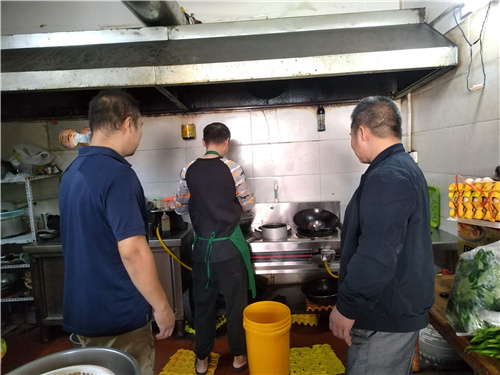 检查组走进3#办公楼、食堂、学生宿舍、幼儿园、海鲜市场等场所仔细检查食品安全、消防安全、教学设施设备安全等防控措施推进和整改情况。经过现场检查,教融合基地消防监控系统基本完成,目前正在进行收尾工作;南宁市工贸职业技术学校已按要求进行灭火器的采购工作,广西新锦投资有限公司经营的海鲜市场消防水闸已正常供水。同时,查检组也发现新的安全隐患,如南宁市工贸职业技术学校负责的11#宿舍楼只设有一个楼梯口,而一个消防通道封住;个别商铺没有启用煤气报警器等。