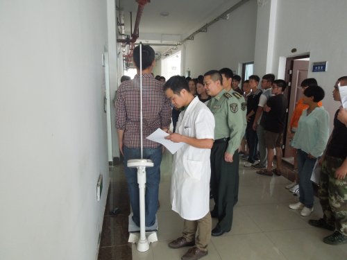 为保障我校2015年夏季大学生征兵工作顺利进行,按照大学生入伍工作规划,4月27日,在保卫工作部副主任邹志友的组织下,参加本年度应征报名的40余名同学来到校医院进行体检。扶绥县人民武装部部长张加兵上校亲临现场指导工作。 在校大学生应征入伍,是提高国家兵员素质、增强军队战斗力的需要,是青年学子履行保家卫国的光荣义务,实现自我价值,发挥专业才能的渠道。为做好大学生征兵工作,保卫工作部制定了详细的工作方案和实施计划,通过校园网络、手机短信、微信、宣传横幅、图板等多种形式广泛宣传2015年征兵政策、体检标准、大学生入伍等优惠条件。体检结束后,还组织了网上报名培训。 我校在校学生参军热情高涨,纷纷报名应征,希望到部队履行保家卫国的神圣使命。根据安排,体检合格的同学将进入下一轮身体复查。