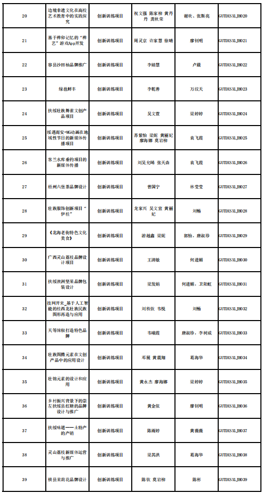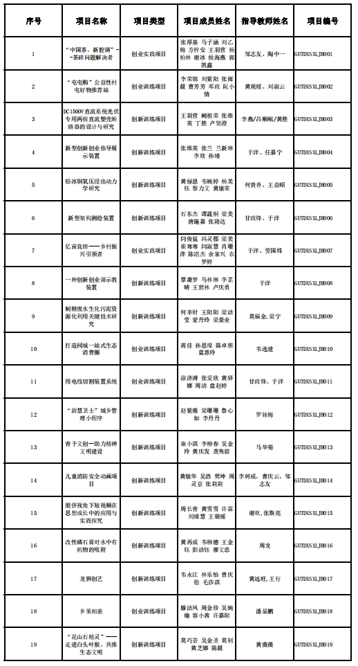 根据《桂林理工大学大学生创新创业训练计划项目管理办法》的工作要求, 经桂林理工大学英国上市公司365各个院系评审推荐,确定桂林理工大学英国上市公司3652023年大创立项项目共44项,(其中2项评选为国家级项目,9项评选为自治区级项目,33项评选为校级项目),现将具体项目公示如下: