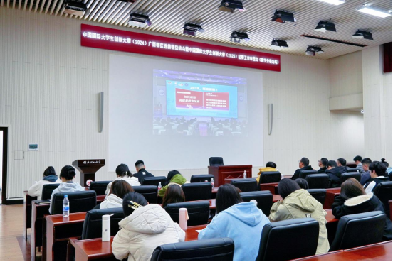 会议期间,自治区教育厅副厅长张旭凤指出,要以中国国际大学生创新大赛为重要纽带,强化思想政治引领,夯实平台支撑体系,构建涵盖创新创业全流程的服务机制,努力营造各方协同、互利共赢的创新创业生态环境。同时,要深化人工智能技术在创新创业教育中的应用,有效打通科技成果转化的 “最后一公里”,推动创新创业教育与社会实际需求深度融合,为新时代广西的高质量发展贡献力量。广西民族大学校长韦仕珍在开场致辞中着重强调了创新教育对于高校人才培养以及广西创新驱动发展战略的重要意义。广西科技大学副校长李健就中国国际大学生创新大赛(2024)广西赛区选拔赛作了全面总结汇报。随后,作为中国国际大学生创新大赛(2024)获奖院校代表,广西大学、广西民族大学、广西水利电力职业技术学院依次进行大赛组织经验交流发言,国赛金奖项目团队代表也依次开展项目路演展示。总结会议结束后,大赛专家、嘉宾围绕中国国际大学生创新大赛(2025)作了专题报告。