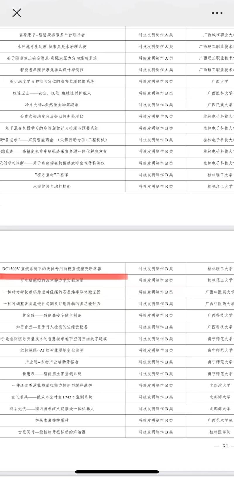 2023年5月12日至13日,由共青团广西区委、自治区教育厅、自治区科协、广西学联共同主办,桂林电子科技大学承办的第十一届“挑战杯"数字广西集团广西大学生课外学术科技作品竞赛终审决赛在桂林电子科技大学花江校区举行。此次竞赛作为一项大学生创新创业类比赛,受到了分校的高度重视,共收到六系提交的78件参赛作品。其中,自然科学学术论文12件、哲学社会科学调查报告13件、科技发明A类16件、科技发明B类37件,在桂林理工大学英国上市公司365老师的辛勤指导以及学子的努力奋斗下,作品“DC1500V直流系统下的光伏专用两极直流塑壳断路器”荣获三等奖,这是分校学子首次获得“挑战杯”区级以上奖项,是分校在此赛事上的一次历史性的突破。