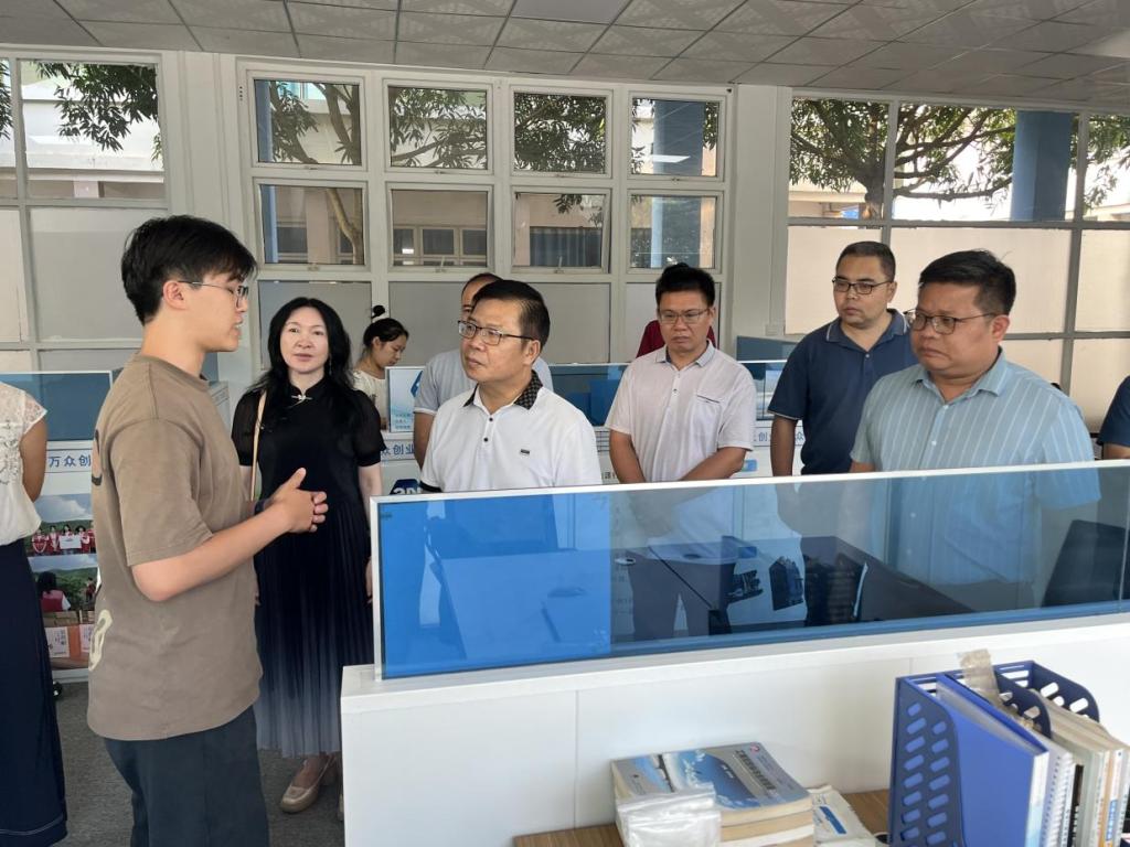 2024年10月15 日,崇左市科技局党组书记黄国晓、副局长奉仰初以及成果转化与人才科普科科长韦秋逢等莅临英国上市公司365众创空间开展调研工作。分校副校长马华菊、扶绥县县委常委、县委办主任、扶绥县空港经济区常务副组长钟庆庆锋以及分校大学生创新创业指导中心负责人等陪同调研。