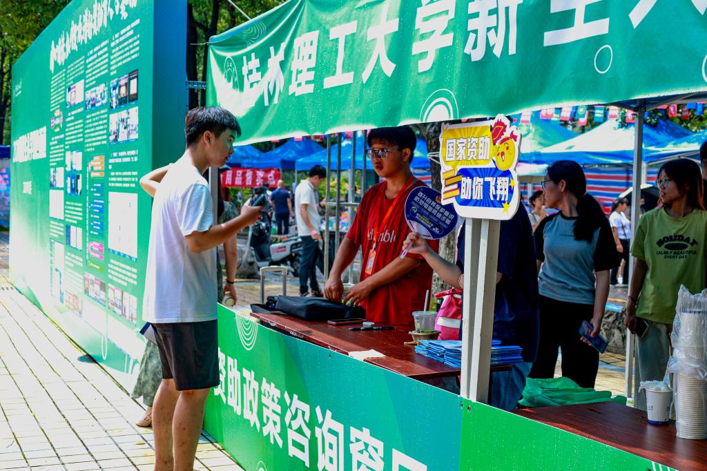 各学院紧密结合自身学科特色、学院文化等,纷纷设计了别出心裁、充满趣味性的迎新活动,准备入学礼包,用热情与真诚迎接新同学,精心为萌新们描绘着他们的“桂工初印象”。在热烈氛围的感染中,新生们纷纷兴致勃勃地和学长学姐交流、与院系吉祥物互动。妙语连珠的打卡展板、心愿墙留念、与各式各样的镂空板合影、学生艺术团精彩的“快闪”表演……新桂工人的故事就此开启。