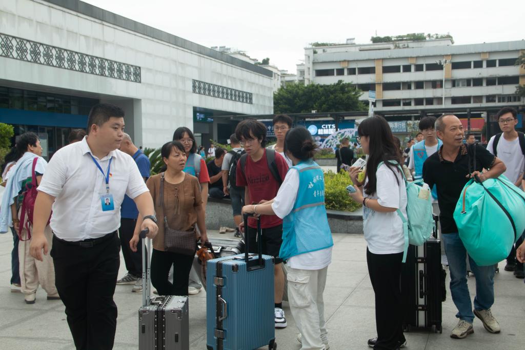 迎着清晨第一缕阳光,早6时,辅导员们和学生志愿者们就已从学校出发,前往桂林站、桂林北站等各个接待站点,热情等候新生到来。辅导员、志愿者引导新生及家长们有序乘车,将其安全送到校内。从清晨到傍晚,一趟趟往返、一车车行李,辅导员和志愿者用心用情为新生踏上桂工的第一站保驾护航。