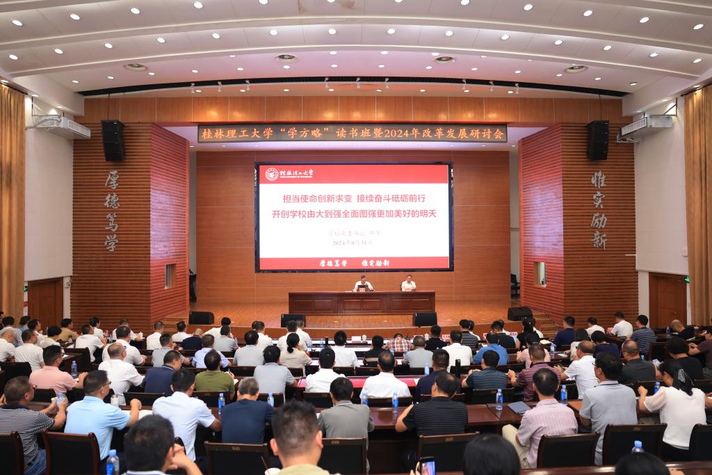 本次“学方略”读书班暨改革发展研讨会深入学习贯彻党的二十届三中全会精神和习近平总书记关于广西工作论述的重要要求,聚焦推动学校党委三届八次全会精神落地落实、聚焦加快高水平理工大学建设,找问题、提对策、出思路、谋发展,进一步统一了思想,凝聚了力量,进一步明确了学校全面深化改革的目标任务、思路举措和聚力攻坚的主要方面、重点任务,进一步部署了新学期的工作任务,进一步明确了各方面的工作要求,达到了统一思想、明确方向,鼓舞士气、提升干劲,凝聚力量、推动发展的目的,取得了预期成效。全体领导干部将深入学习贯彻会议精神,解放思想、创新求变,团结奋斗、争先进位,做到思想上高度重视、行动上果断迅速、责任上压紧压实、措施上得力有效,以钉钉子精神狠抓工作落实,为推动学校各项事业取得新突破,打开高质量发展新局面,实现由大到强、全面图强新跨越,全面服务中国式现代化和新时代壮美广西建设而团结奋斗!