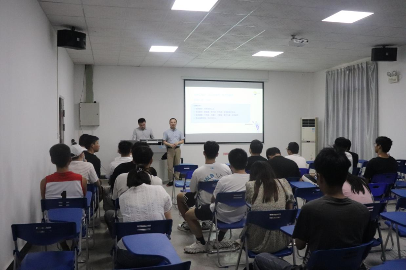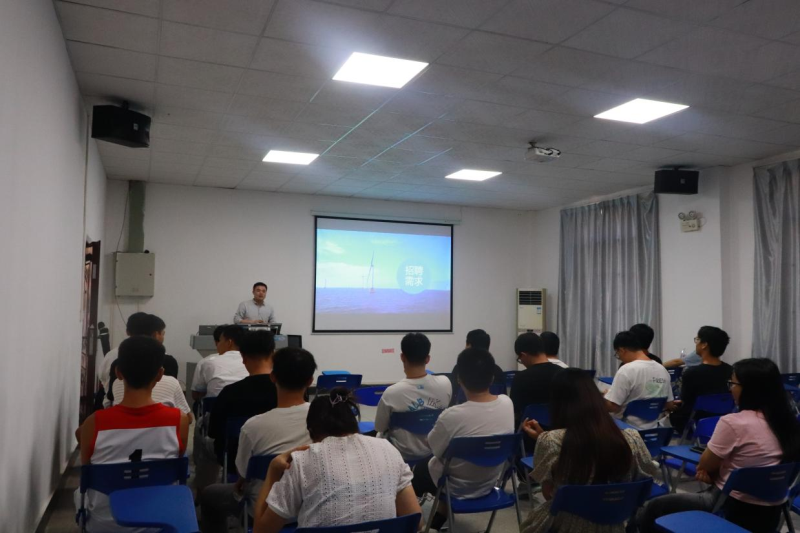 会议开始由宣讲人播放宣讲视频,让同学们对公司有大致的了解,随后又通过PPT进行精讲,详细的介绍福建海电运维科技有限责任公司的发展历程、招聘岗位、薪资待遇等。最后,同学们积极与宣讲人进行互动,宣讲人热情为同学们解答,直至招聘会圆满结束。