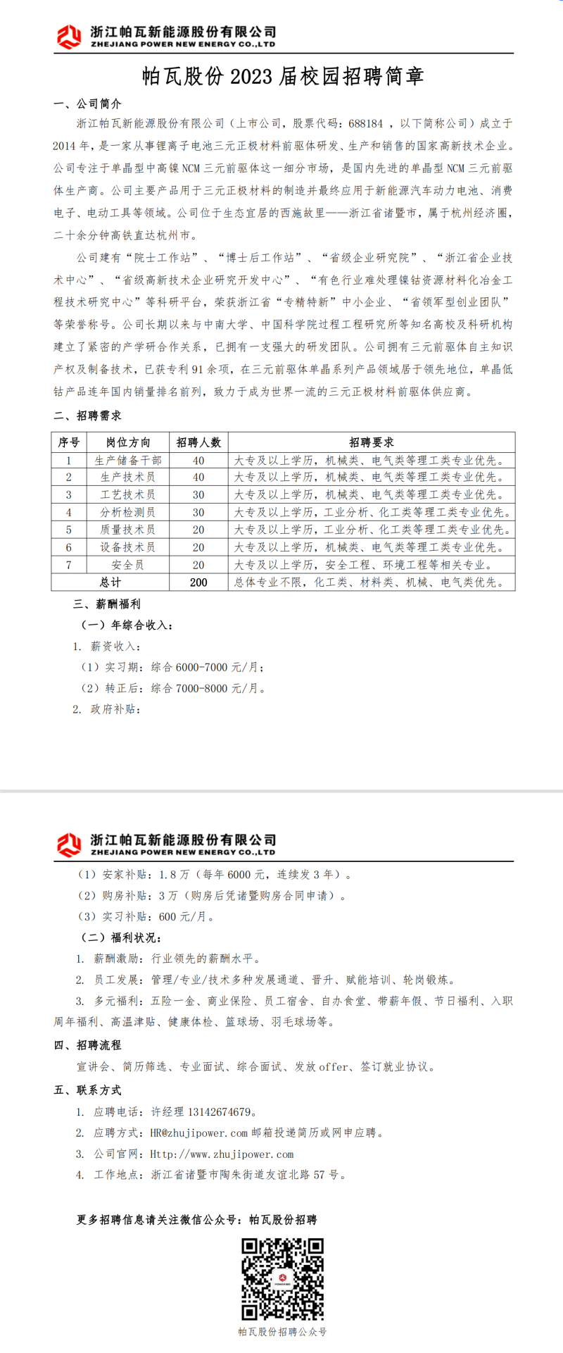 【招聘信息】(转)帕瓦股份 2023 届校园招聘简章