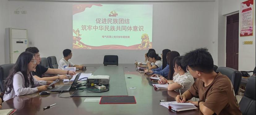 9月28日下午,电气系第三党支部在玉成楼4208会议室开展“促进民族团结,铸牢中华民族共同体意识”专题党课。支部全体党员参加,党课由支部书记唐淑珍同志主讲。