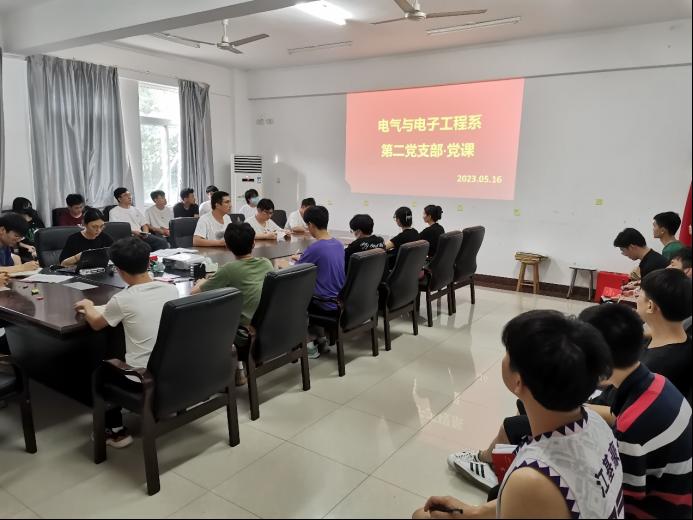 为深入开展“学习贯彻习近平新时代中国特色社会主义思想主题教育”会议讲话精神,2023年5月16日,电气系第二党支部在玉成楼4208开展“学习贯彻习近平新时代中国特色社会主义思想主题教育”专题党课。党课由支部书记王斌主讲,支部在校党员参加。