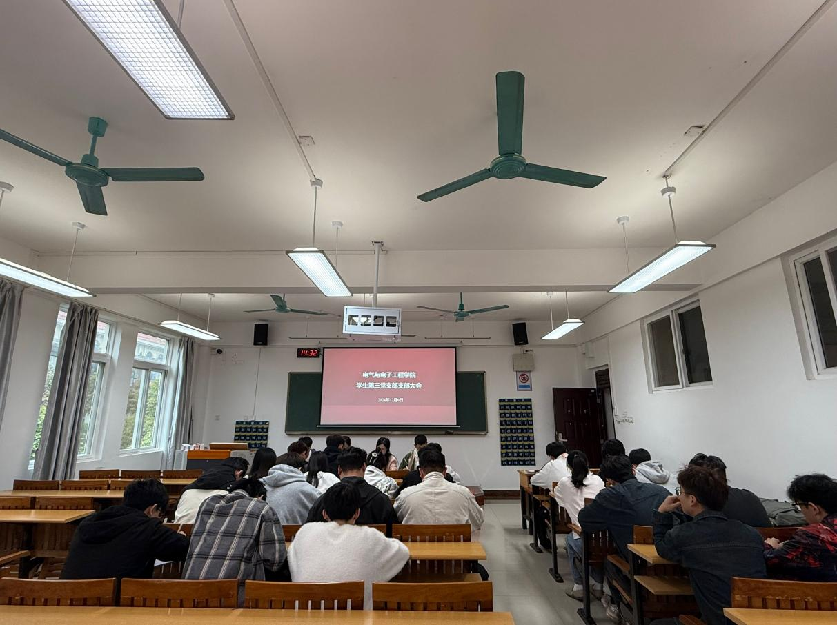 12月6日下午,电气与电子工程学院第三党支部在玉成楼4310召开支部大会。讨论王焕才等16名同志转为中共正式党员的问题,会议由第三党支部书记胡宇主持。