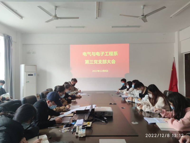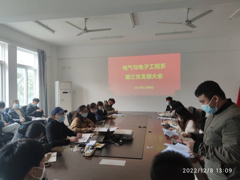 2022年12月8日,我系第三党支部在玉成楼4208召开支部大会。讨论接收罗林森等11名发展对象为中共预备党员。会议由第三党支部书记唐淑珍同志主持,全体正式党员和预备党员参加了会议。